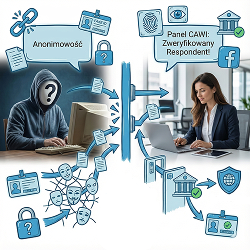 Jednak od momentu pojawienia się realizacji badań CAWI z wykorzystaniem paneli badawczych, problem identyfikacji i weryfikacji respondenta stopniowo znika. Dostępne technologie (kontrola IP, cookies), integracja z innymi systemami (np. portale społecznościowe) oraz system motywacyjny (konieczność weryfikacji za pomocą konta bankowego lub dokumentu tożsamości) pozwalają bardzo istotnie zredukować ryzyko związane z tożsamością respondenta.