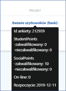 Lista projektów stanowi przegląd wszystkich projektów/ankiet, także tych, które w poprzedniej wersji systemu znajdowały się w archiwum.