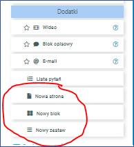 Tworzenie dodatkowych stron, bloków lub zestawów odbywa się przez przeciągnięcie wybranego elementu ankiety w wybrane miejsce struktury ankiety.