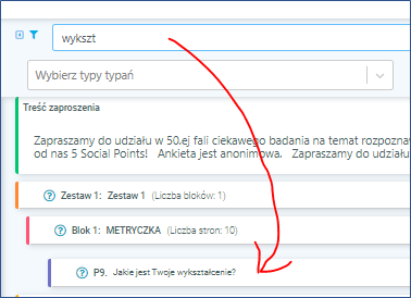 Szybkie przeszukiwanie elementów w strukturze ankiety.